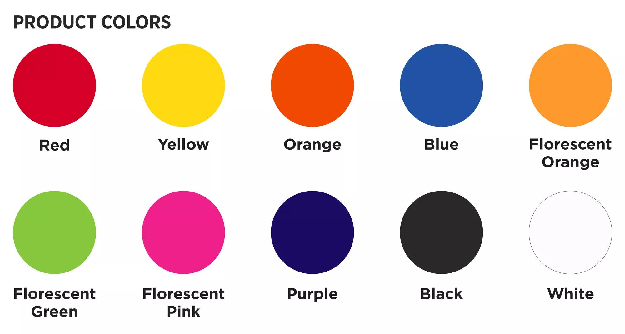 Premium quality, athletic field striping paint in 17 ounce, no clog, no drip aerosol cans. Available in yellow, white, fluorescent green, fluorescent orange, black, blue, purple, red, fluorescent pink and orange.